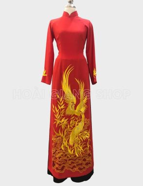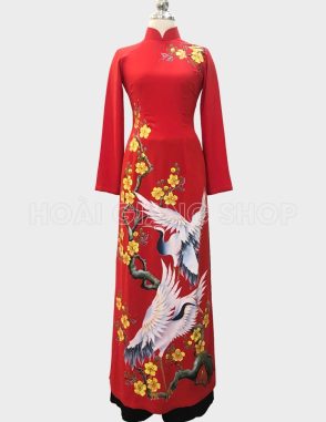 Áo dài nữ đỏ vẽ hoa hồng dây
