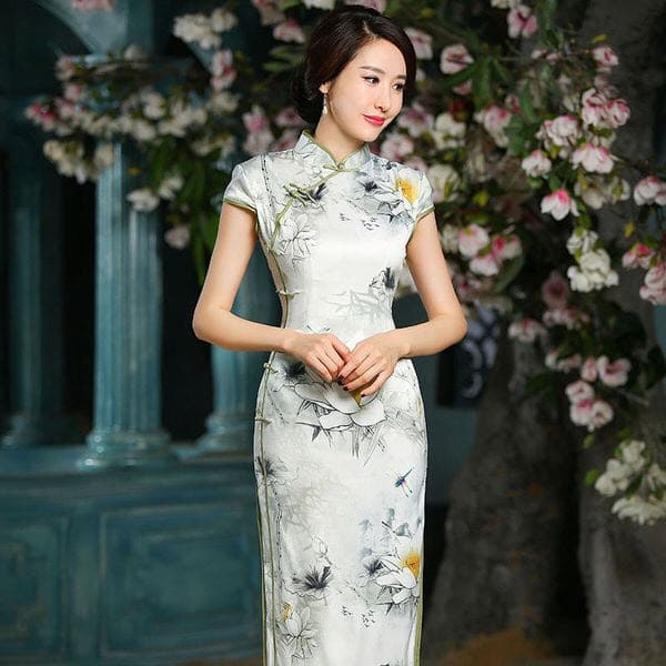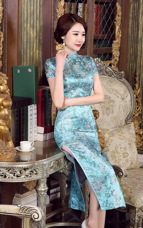 Trang phục sườn xám không chỉ được phái nữ Trung Quốc yêu thích, mà được rất nhiều bạn bè trên các nước ưa chuộng. Với thiết kế làm tôn vóc dáng của người mặc, phần trên ôm sát thân, hàng cúc được thiết kế vắt chéo sang một bên và chạy dọc một bên sườn, 2 tà áo xẻ cao đến ngang đùi tạo dáng thướt tha. Càng tôn thêm đức tính đoan trang, trang nhã, kín đáo của người thiếu nữ.