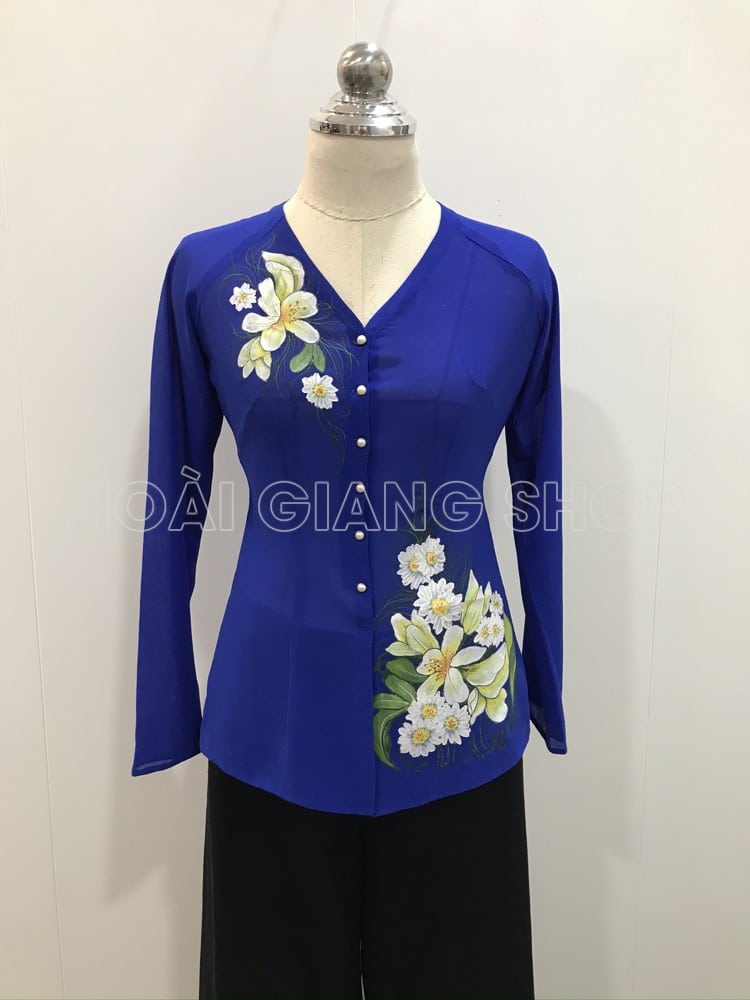 Bà ba xanh đậm hình hoa cúc và hoa sứ