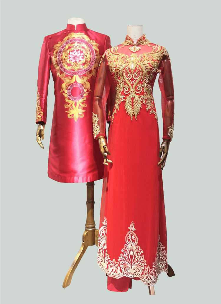 Áo dài cô dâu chú rể màu đỏ