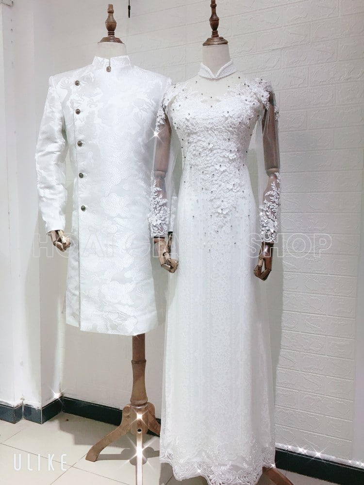 Áo dài cưới cặp màu trắng sang trọng