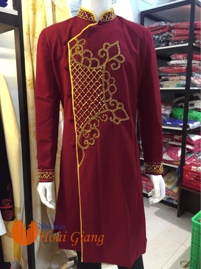 Áo dài nam cách tân đỏ kết cườm sang trọng