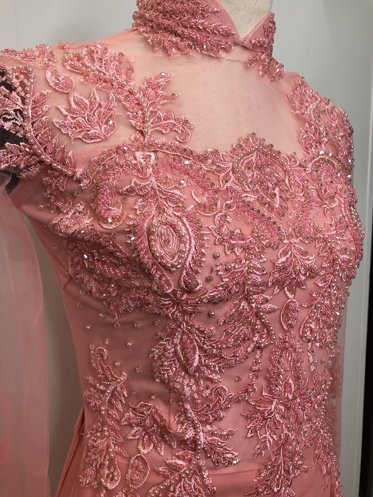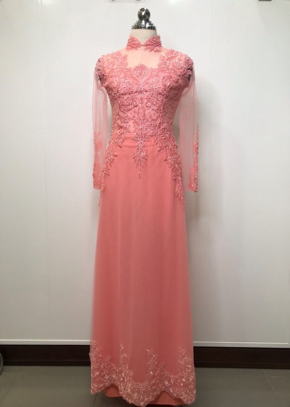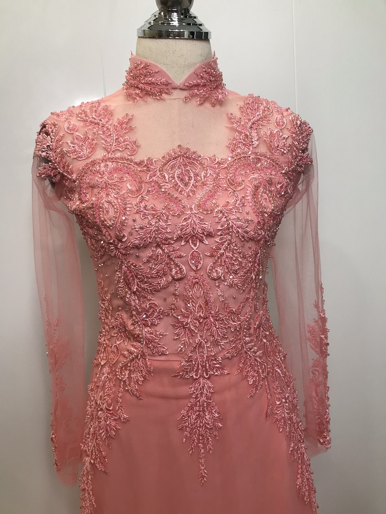 Áo dài cô dâu đám hỏi màu hồng dâu xinh xắn