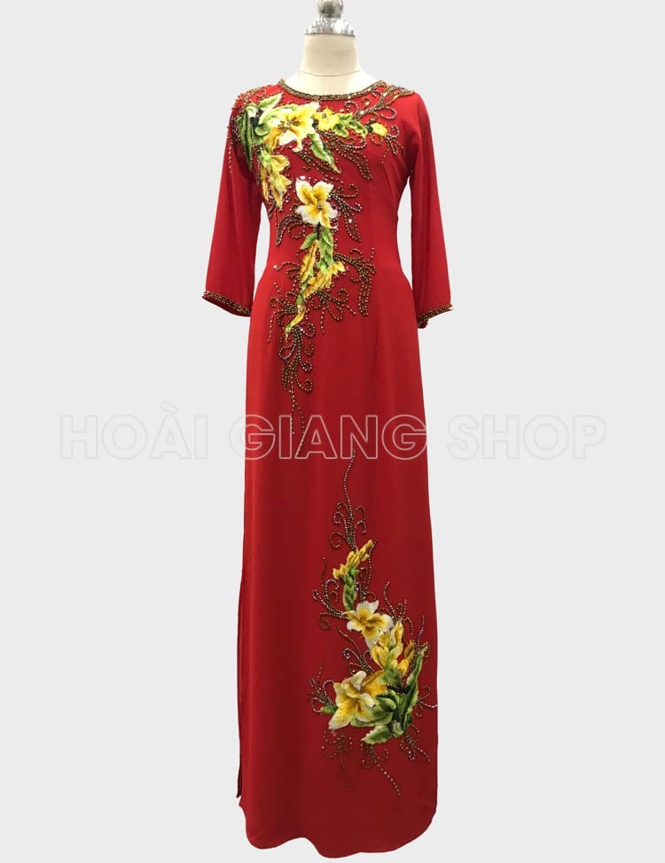 Áo dài mẹ cô dâu màu đỏ sang trọng
