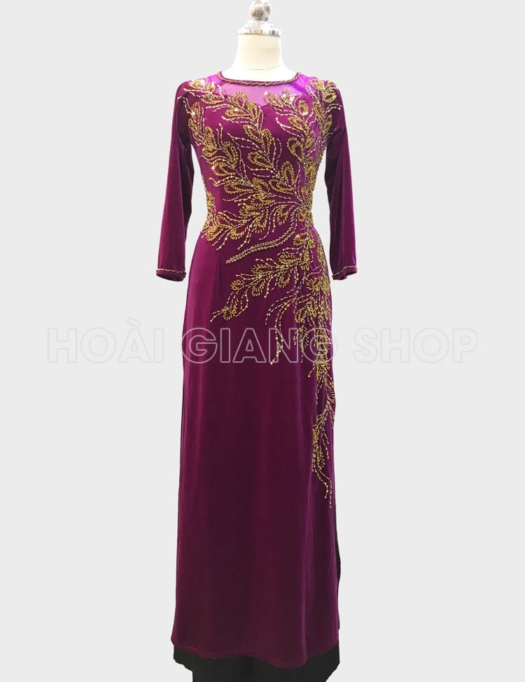 Áo dài nhung hồng sen cho mẹ