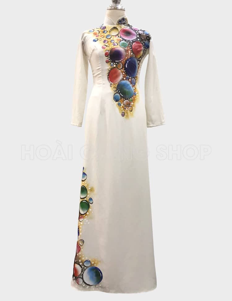 Áo dài trắng hoa văn bong bóng nhiều màu