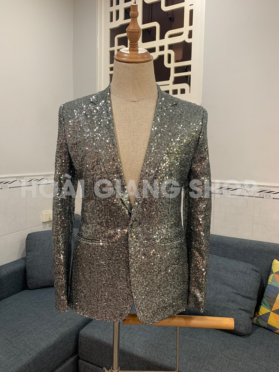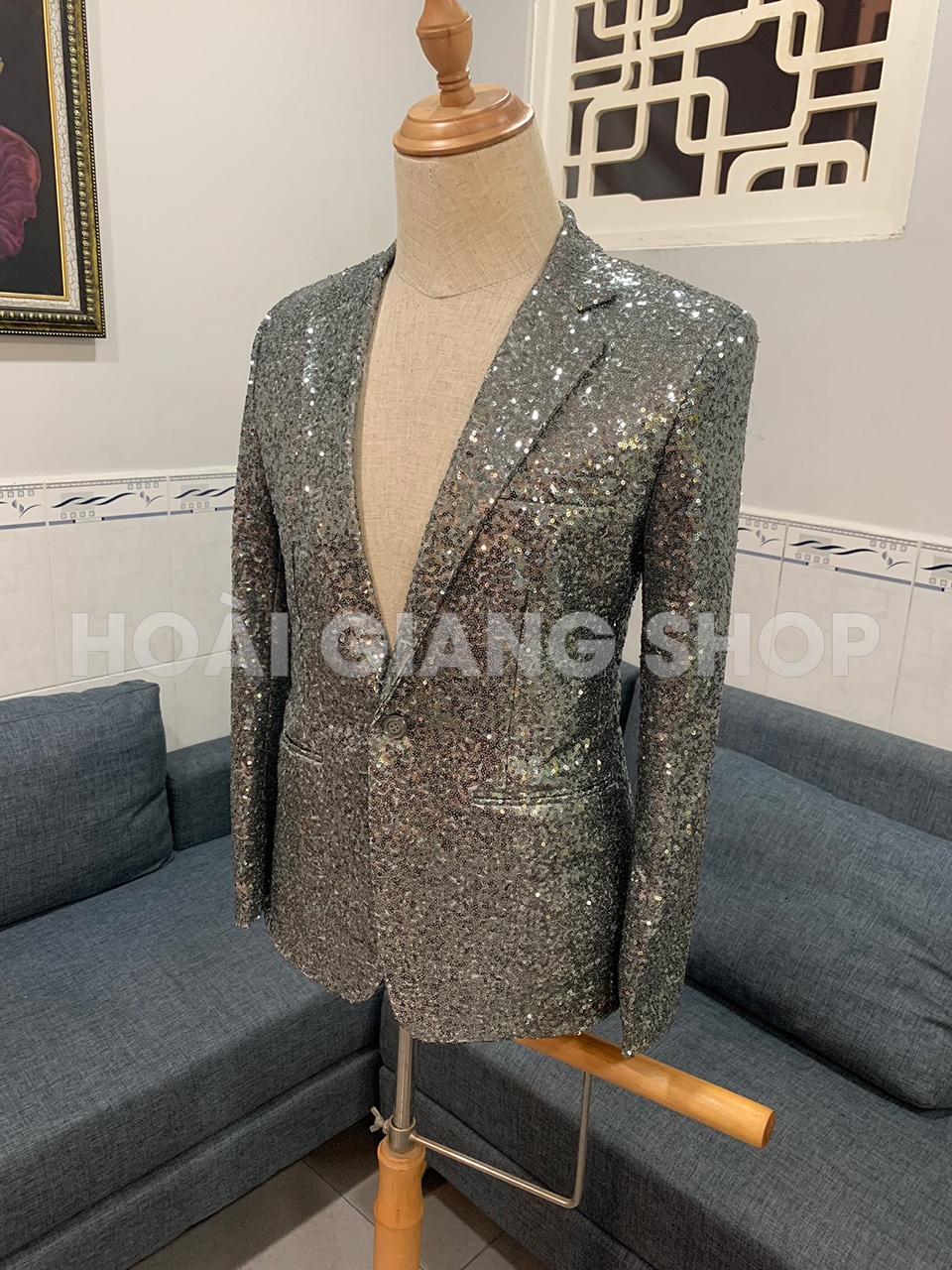 Áo vest nam kim sa xám lông chuột