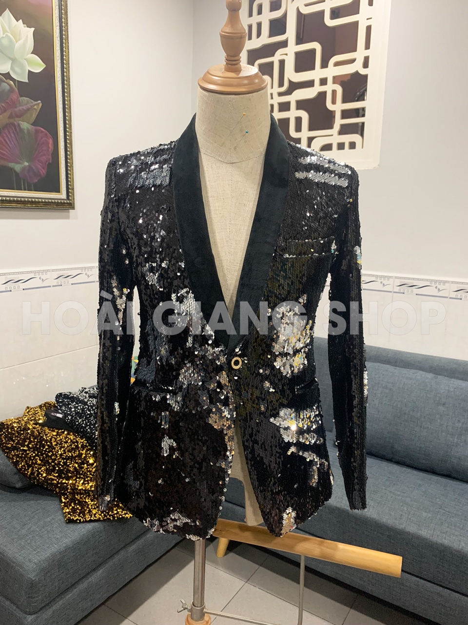 Vest nam kim sa đen trắng (hoa văn tùy chỉnh)