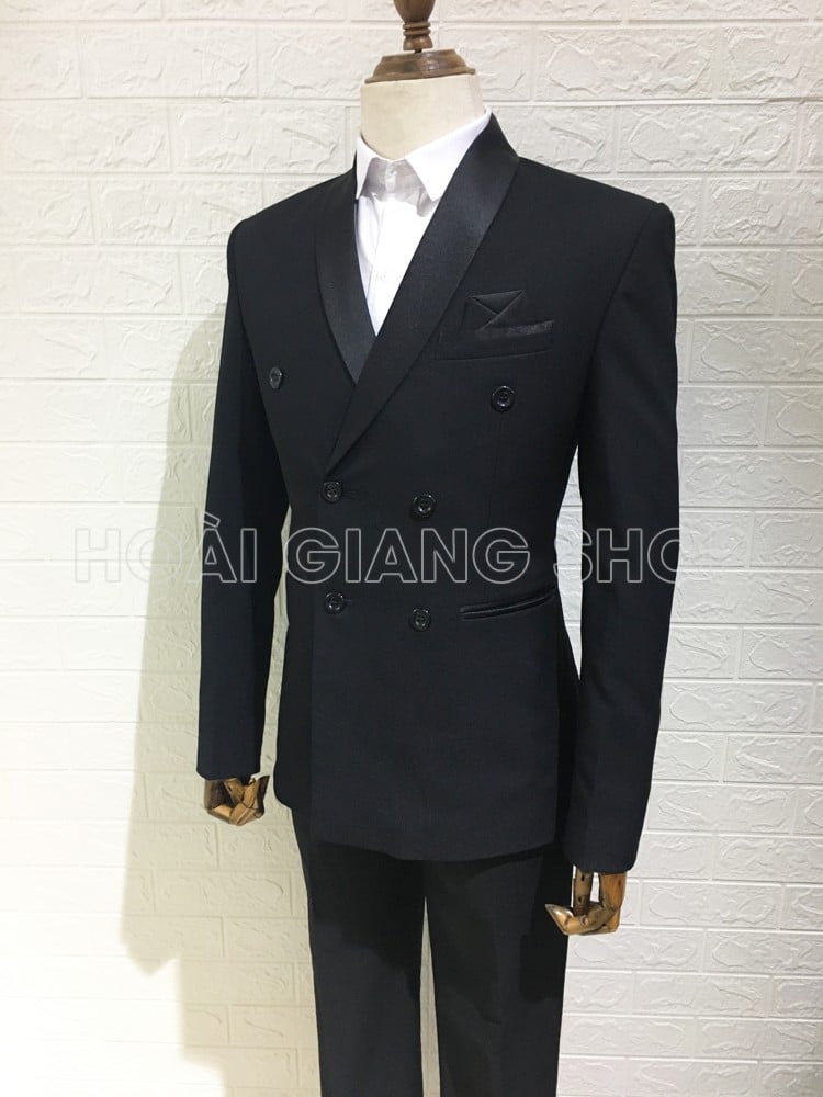 Vest nam đen 6 nút ve cổ sam cá tính