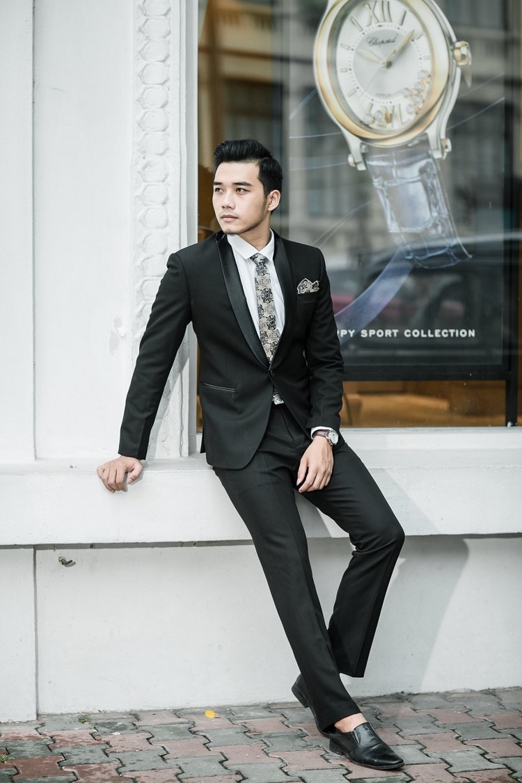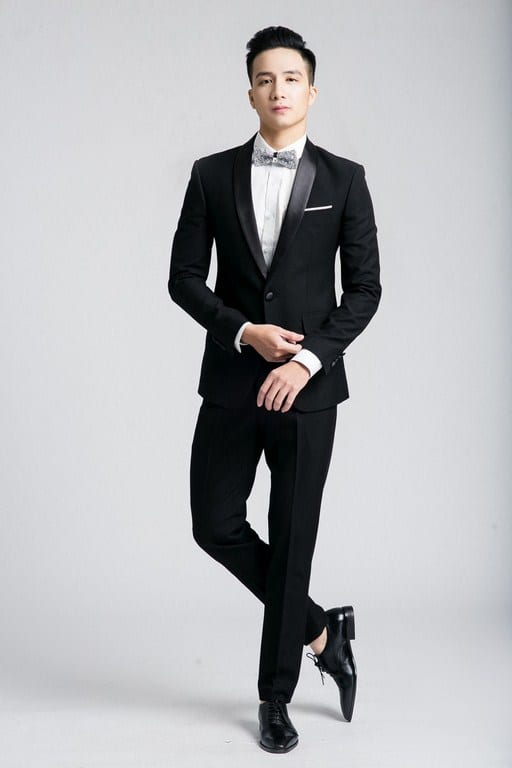 Vest nam đen cổ sam phom Hàn Quốc