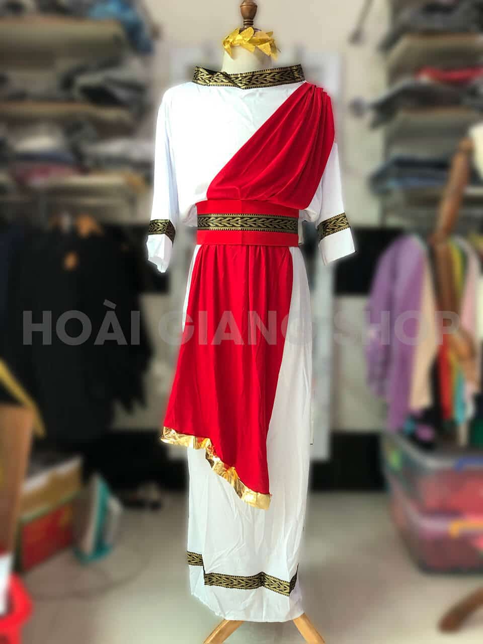 Trang phục Hy Lạp nam trắng phối đỏ