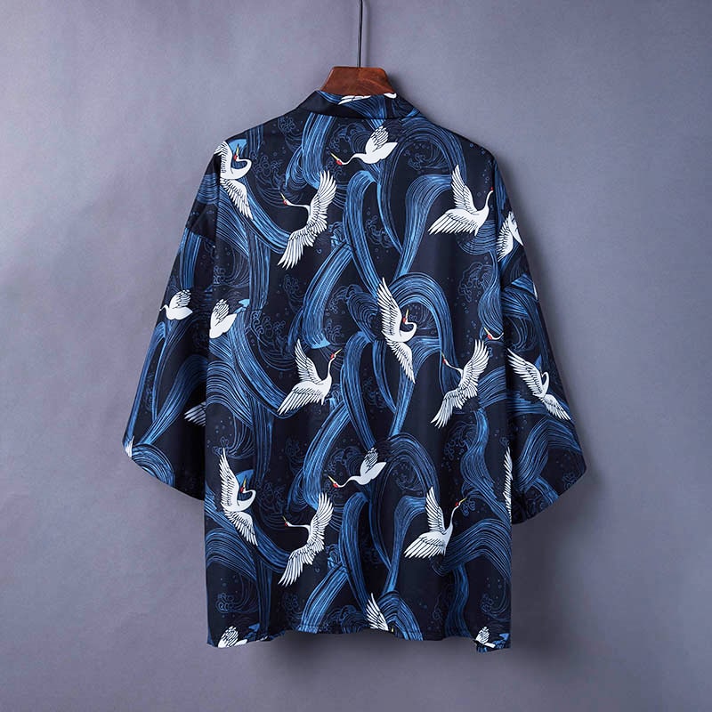 Áo khoác kimono Nhật Bản màu đen hình chim hạc
