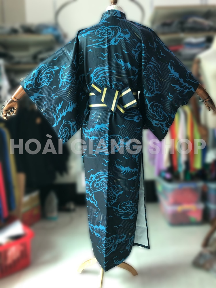 Yukata nam Nhật Bản xanh đen vân mây