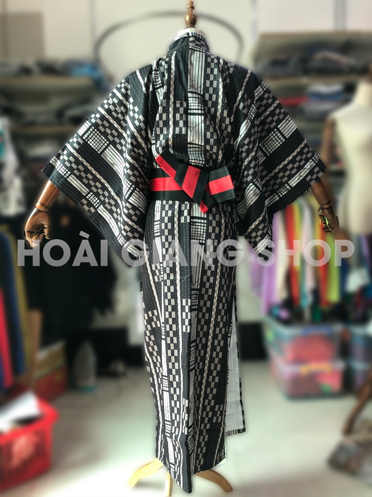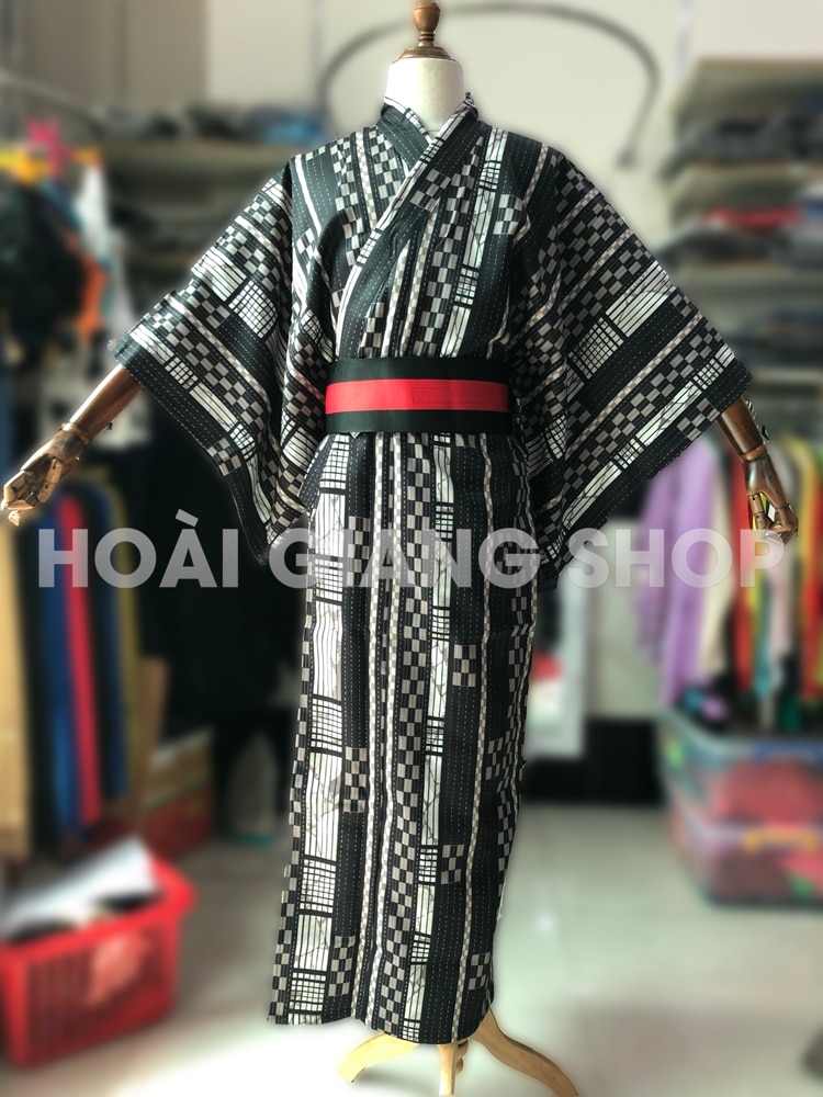 Yukata nam quấn đen caro trắng