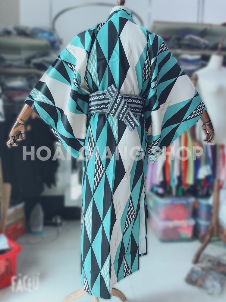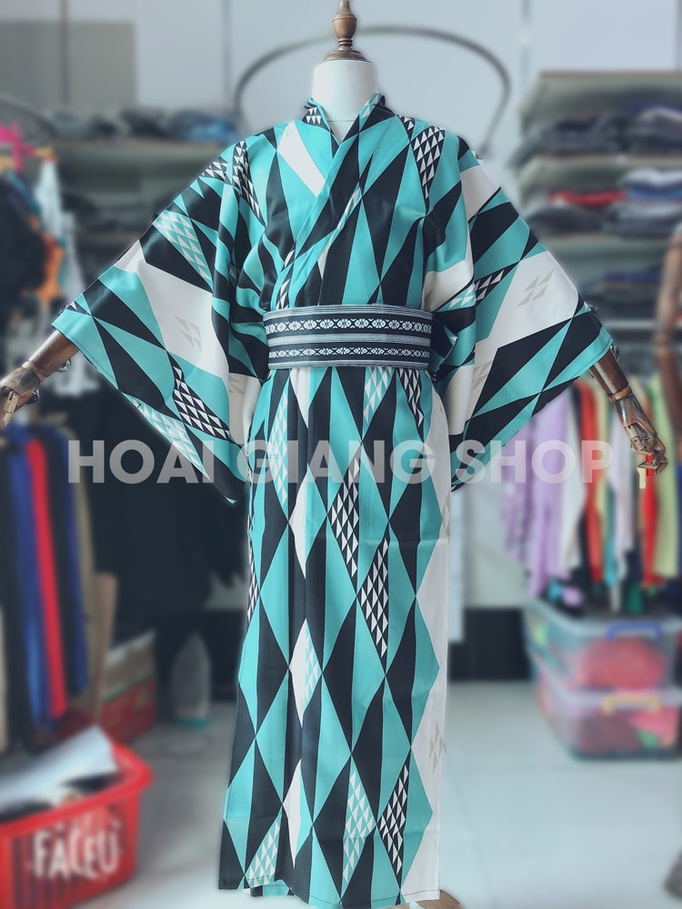 Yukata Nhật Bản nam quấn xanh phối đen