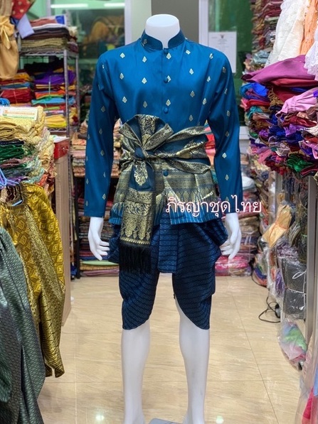 Trang phục Thái Lan nam xanh cổ vịt