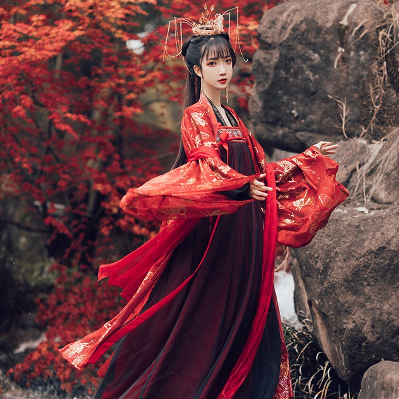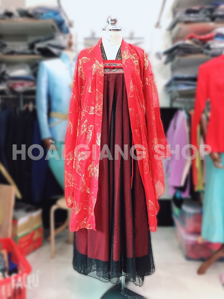 Cổ trang nữ áo đỏ tươi váy đỏ đậm